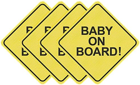 Amazon Com Baby On Board Sticker For Cars 4 Pcs 5 By 5 Baby On Board Sign Decal See Through When Reversing And Bright Yellow No Need For Suction Cup Or Magnets Strong
